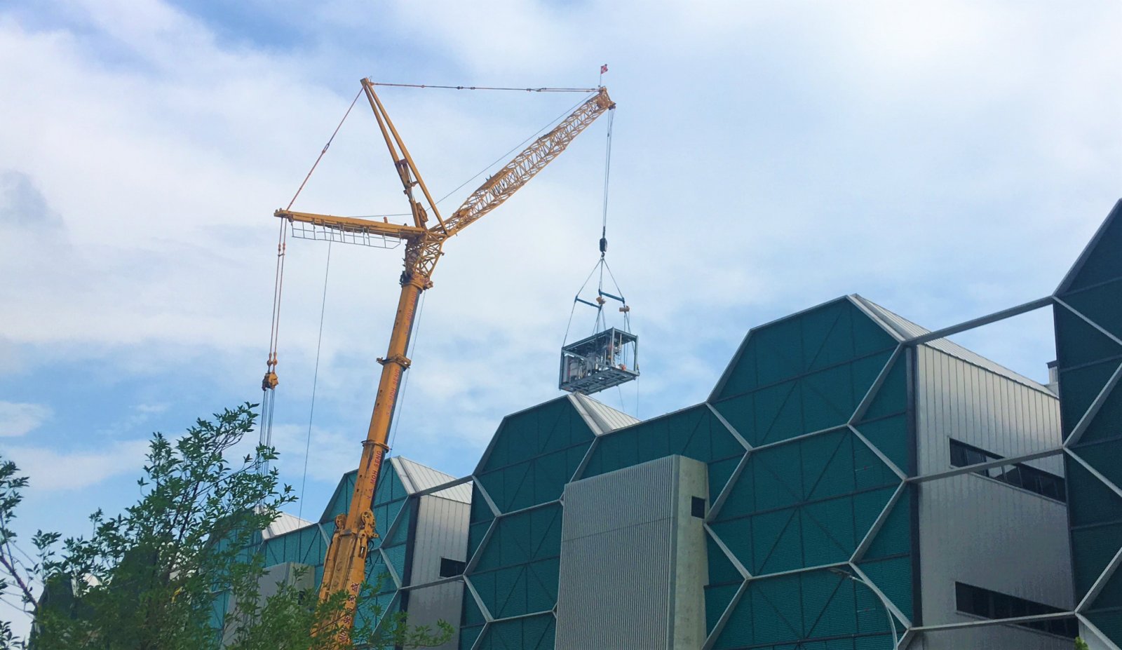 通过起重机将模块移动到建筑物中
